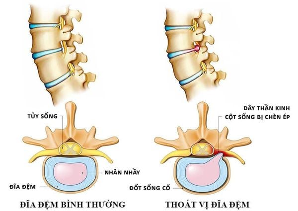 Khi đĩa đệm bị tổn thương hoặc lệch khỏi vị trí ban đầu, các rễ thần kinh có thể bị chèn ép, từ đó gây ra các triệu chứng đau, tê bì hoặc yếu cơ.
