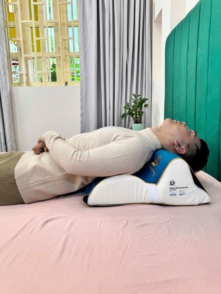 Ưng Hoàng Phúc kê gối cổ kép D9 tại nhà