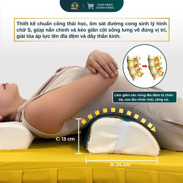 • Vùng kê giữa lưng tạo độ mở nhẹ, kéo giãn đốt sống 10–15°.