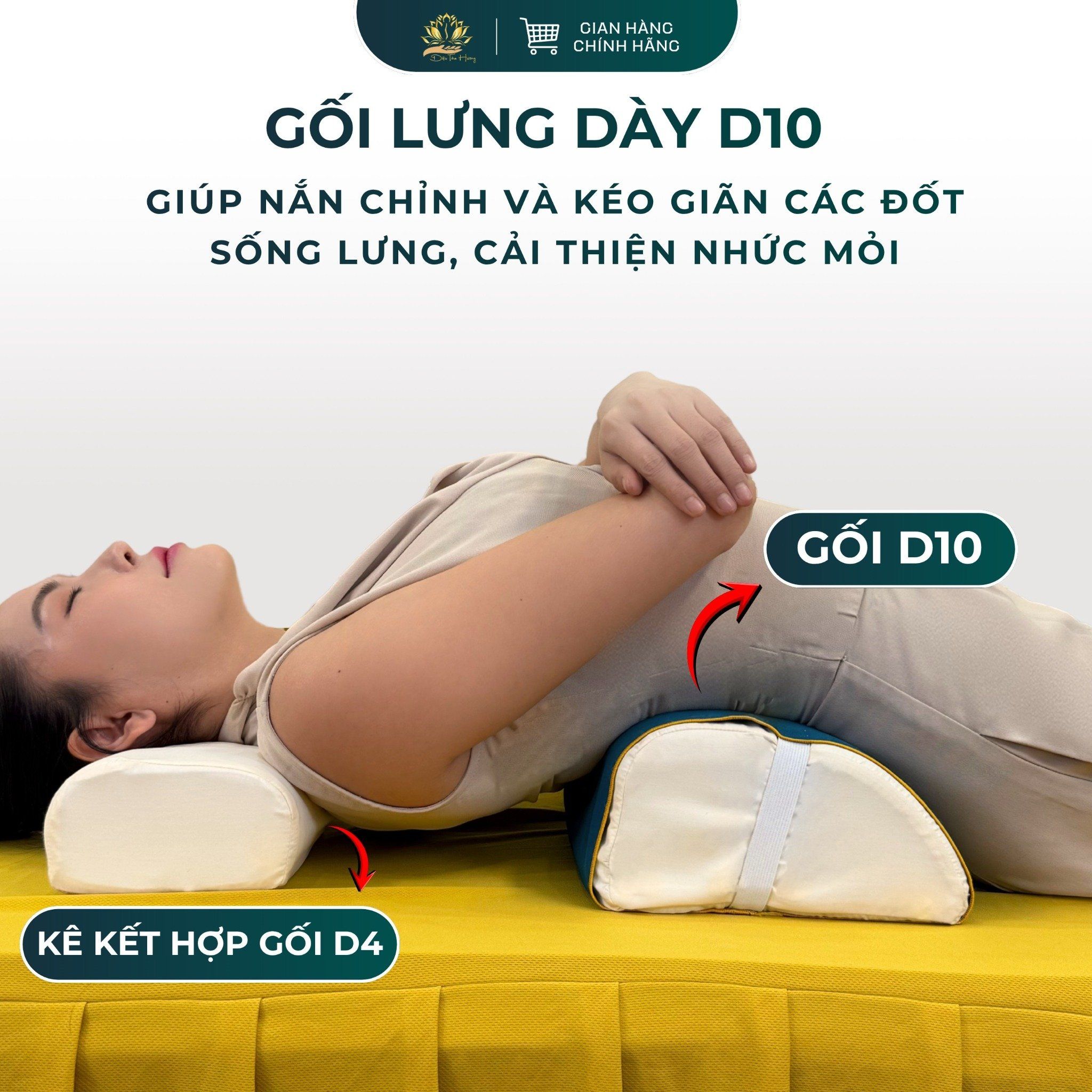 COMBO GỐI D4 + D10 + D9 là sự kết hợp toàn diện: nắn chỉnh và kéo giãn các đốt sống từ cổ, ngực đến lưng. Cực kỳ hữu ích cho các bệnh nhận thoái hóa và thoát vị đĩa đệm cột sống cổ và lưng.
