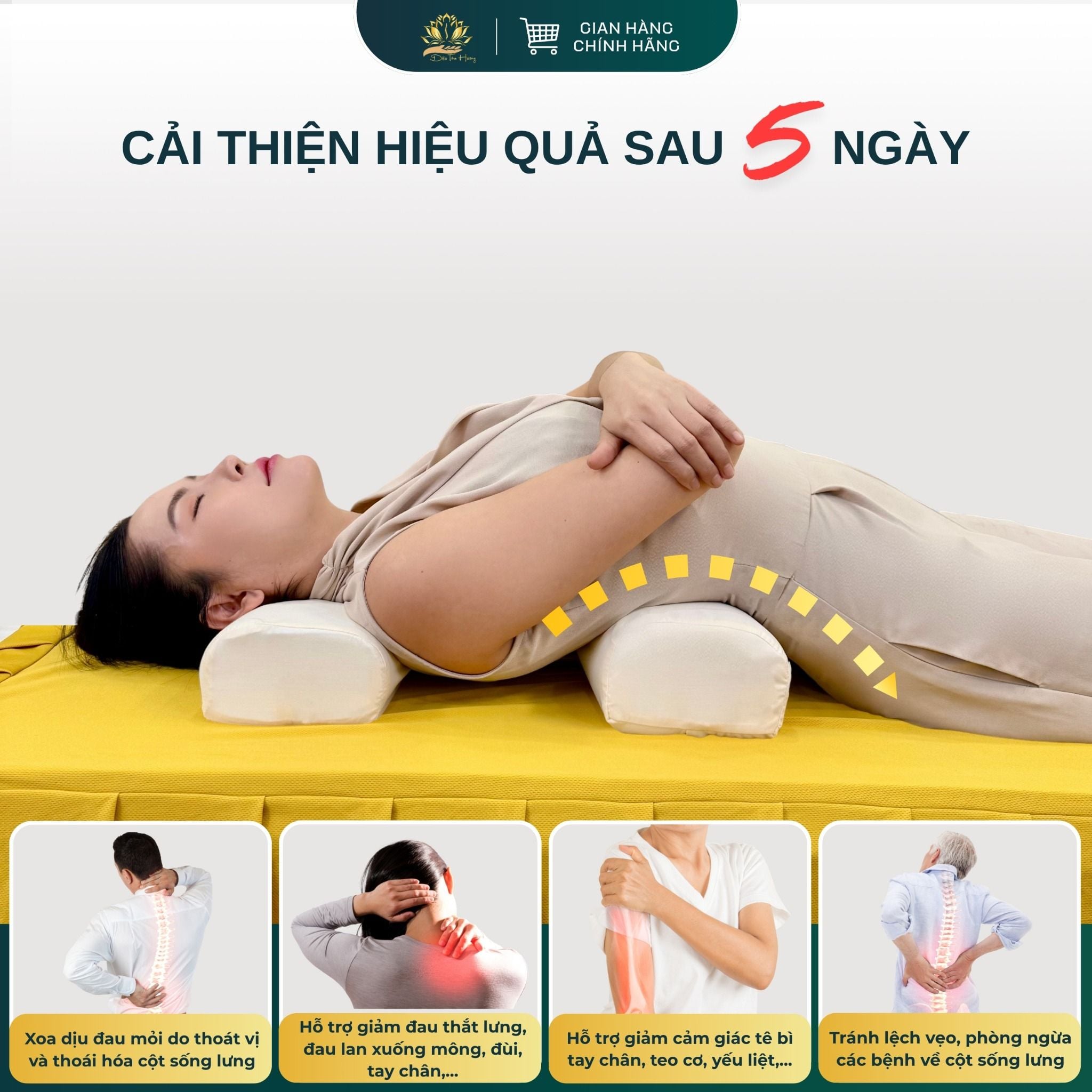 CÔNG DỤNG - Hiệu quả với những người bị thoái hoá và thoát vị đĩa đệm đốt sống lưng, lệch vẹo cột sống, mất đường cong sinh lý cột sống lưng. - Hỗ trợ làm giảm các triệu chứng: đau ngang thắc lưng, đau lan xuống mông, đùi, bắp chân, gót chân, tê chân, thoái hóa khớp gối... - Sử dụng mỗi ngày giúp phục hồi và ngăn ngừa bệnh cột sống.