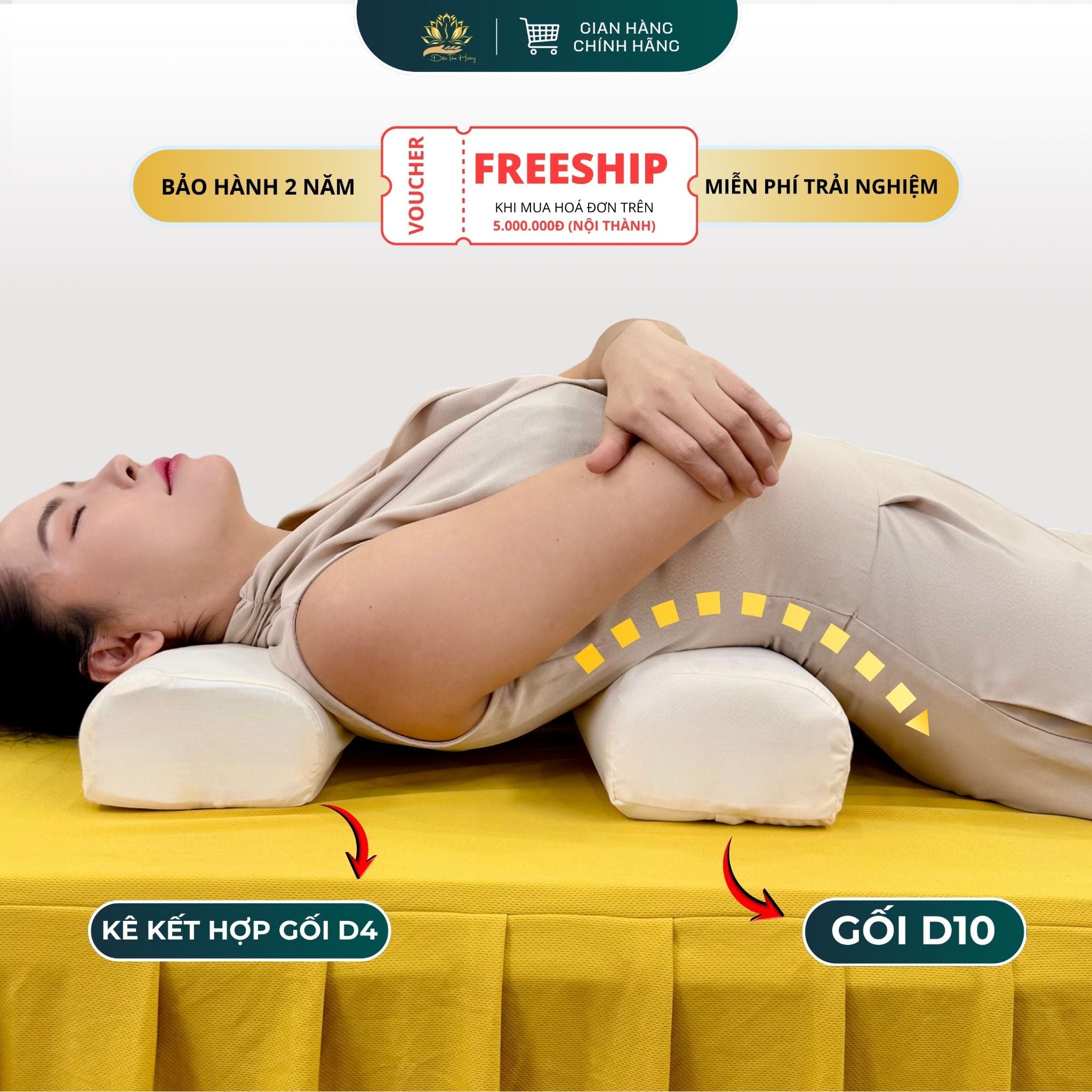 GỐI LƯNG D6: Được thiết kế phù hợp kê lưng cho người lớn tuổi và người bị loãng xương. Sử dụng kê 3 bước từ đốt sống ngực, bụng và thắt lưng giúp kéo giãn toàn diện khung xương một cách an toàn và hiệu quả.