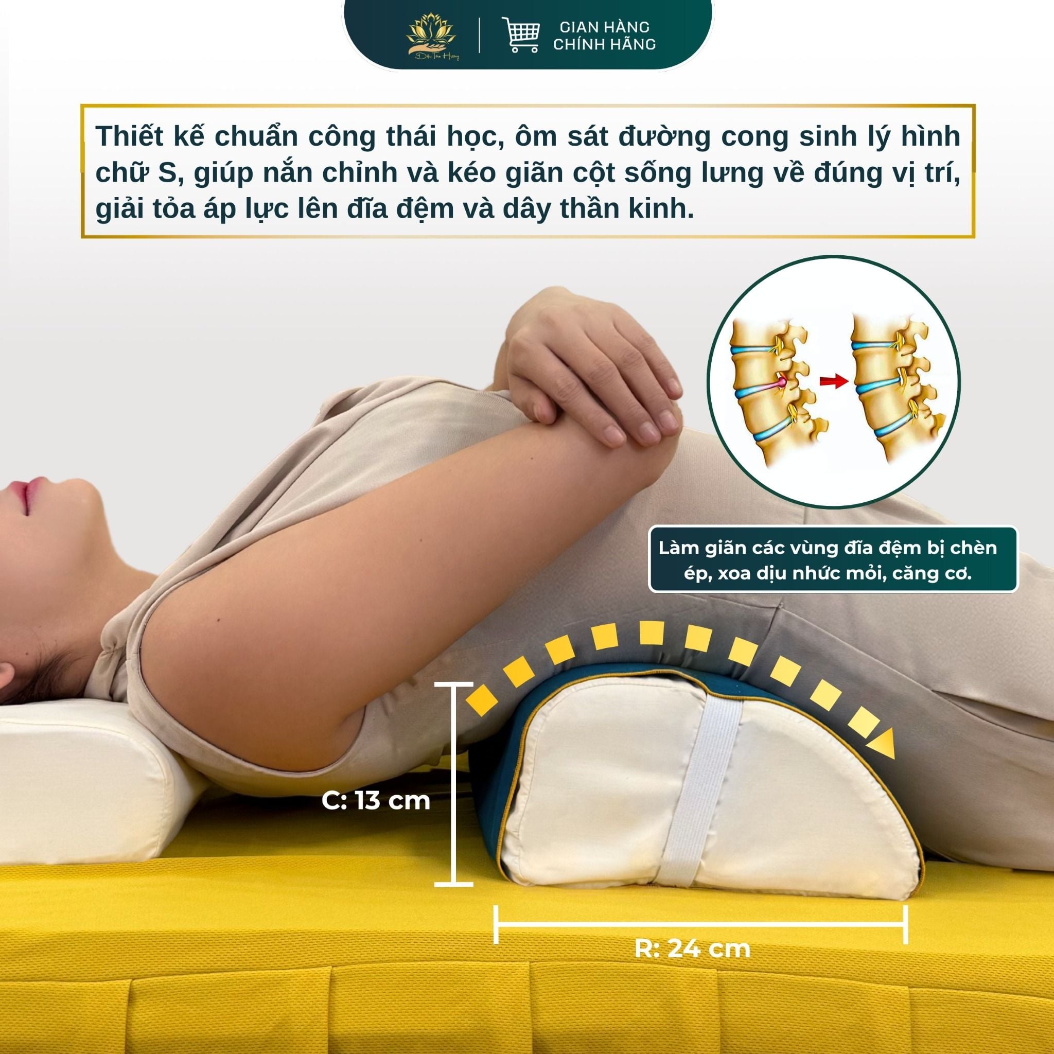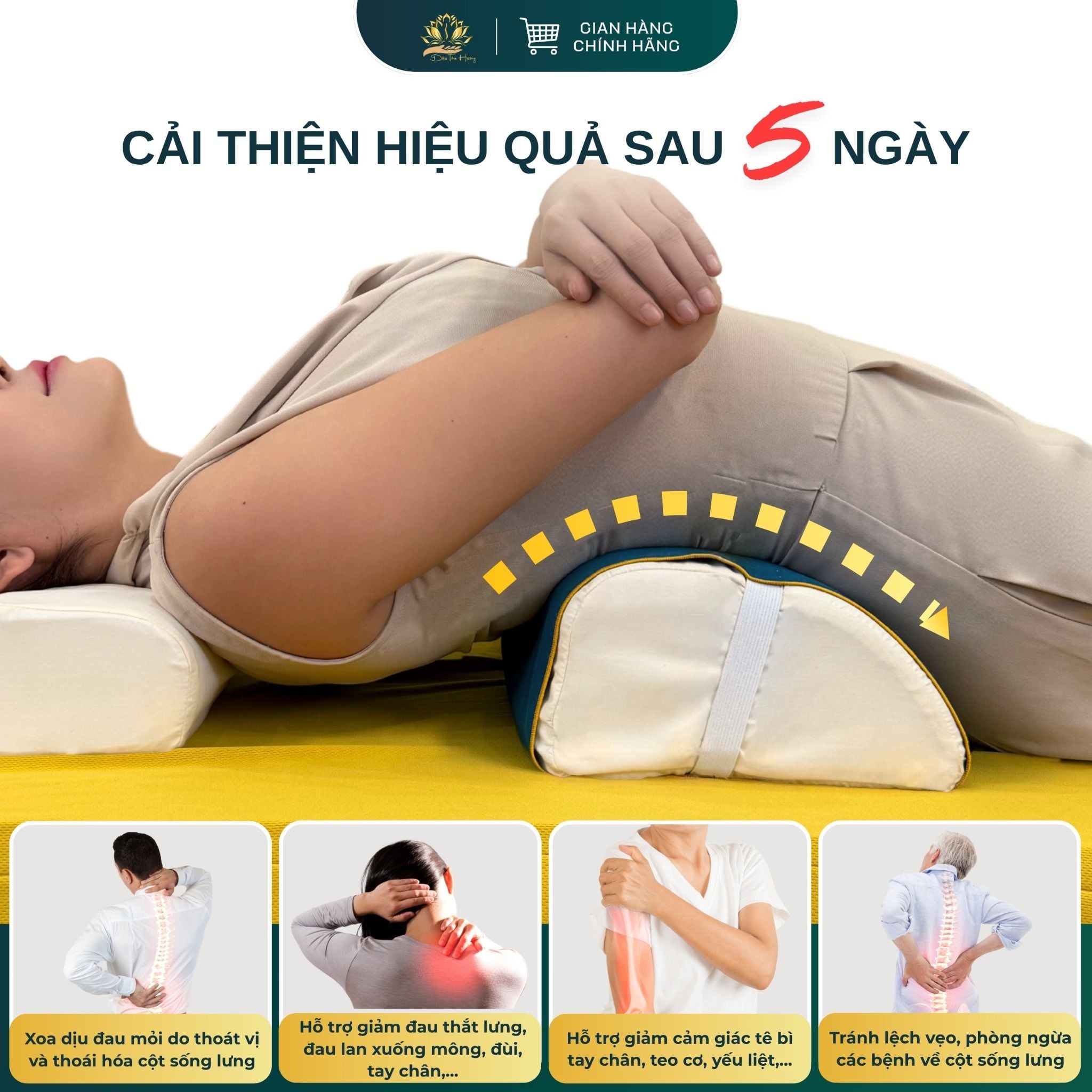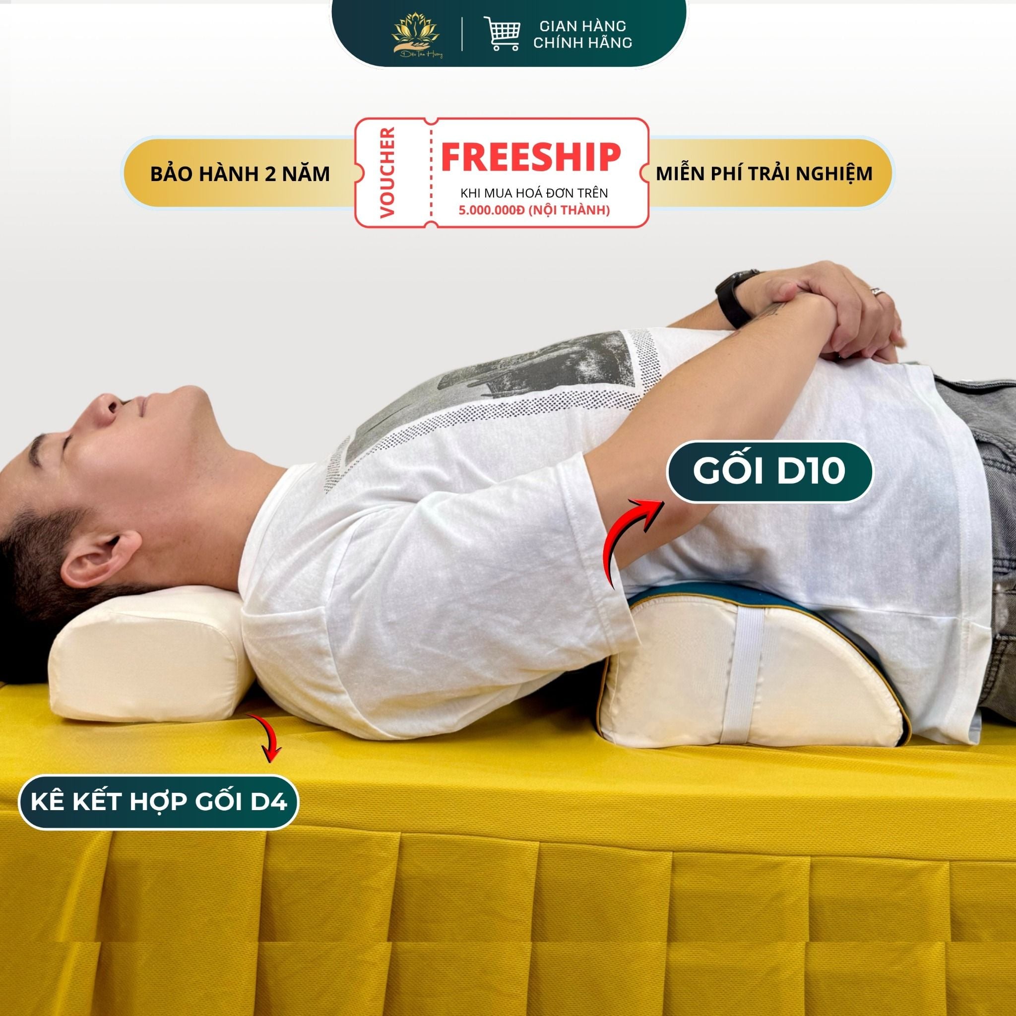 GỐI LƯNG D10: thiết kế có phần lõi bên trong, giúp nắn chỉnh và kéo giãn các đốt sống lưng, dành cho người bị thoái hóa và thoát vị đĩa đệm cột sống lưng.